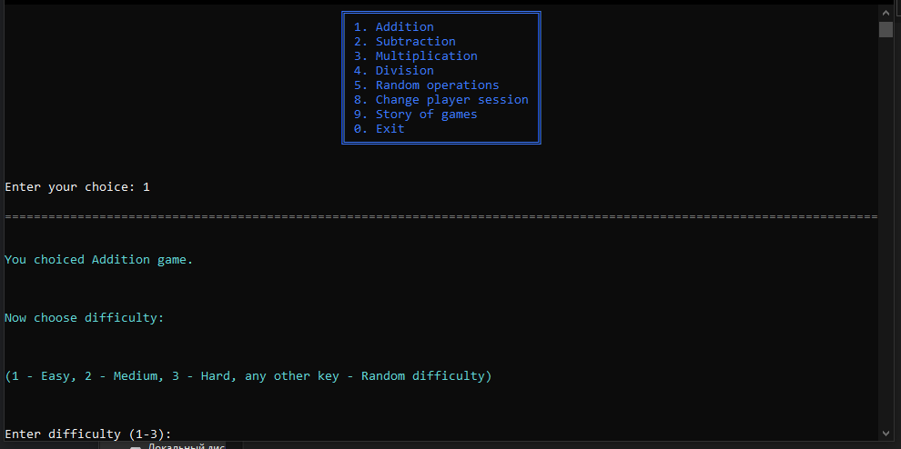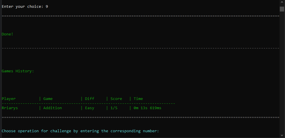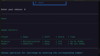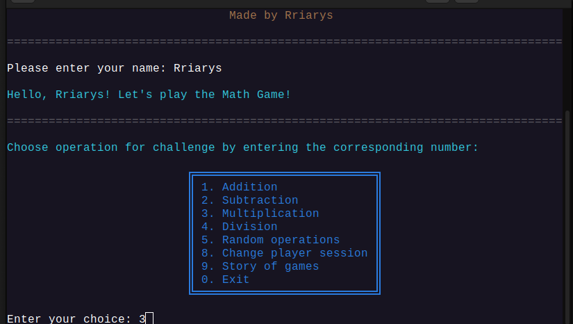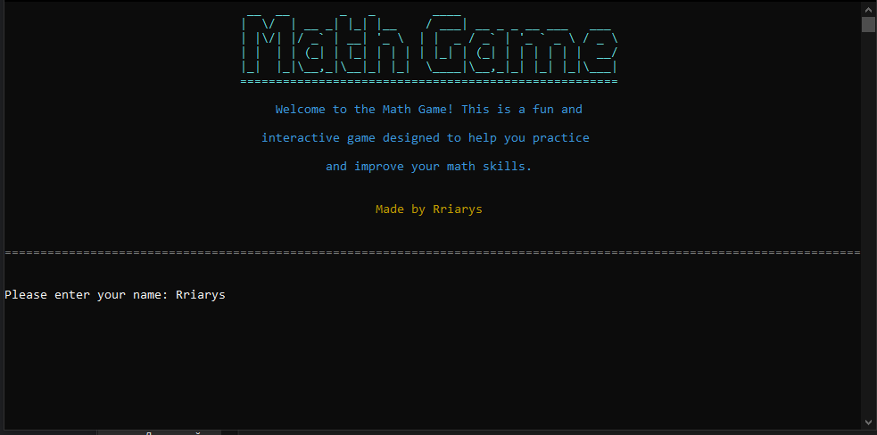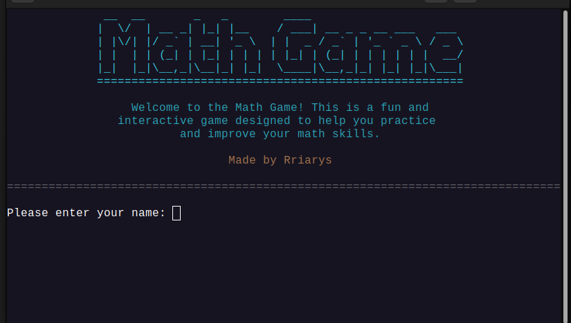It's a classic terminal-based Math Game. Feel free to play around, test your mental math, and check out the CLI interface.